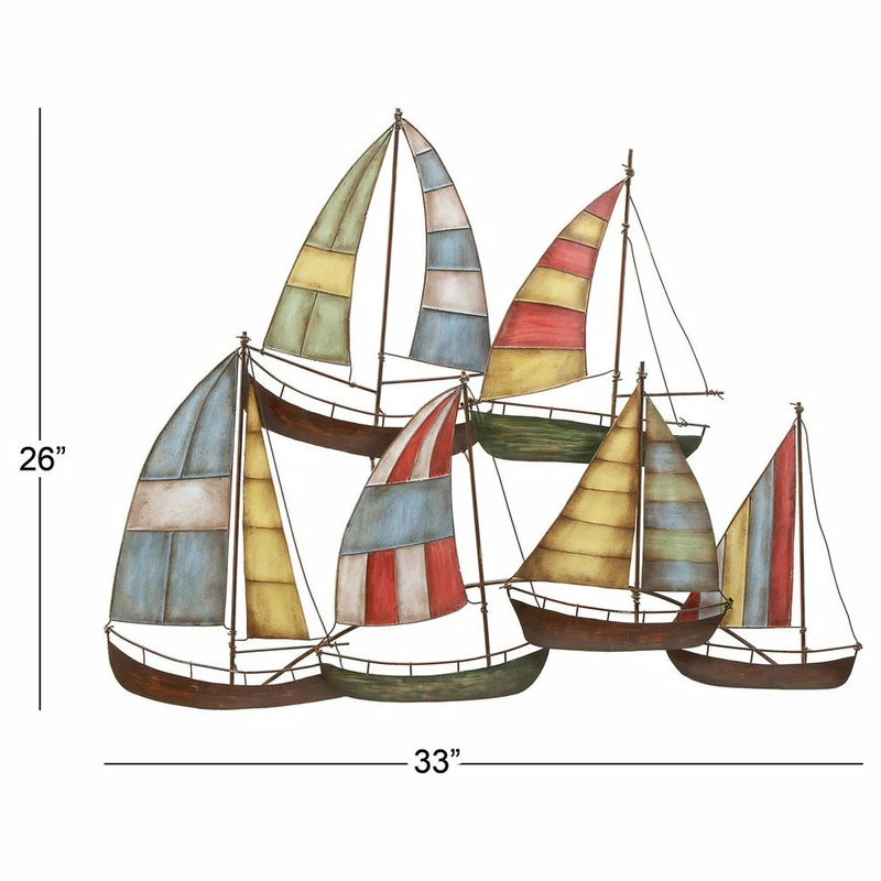 Bring vivid colors to your coastal-themed walls with this sailboat art wall Decor. This item ships in 1 carton. Attached hanging hook for easy hanging; nails and screws are not included. Suitable for indoor use only. This is a single wall decor. Coastal style.