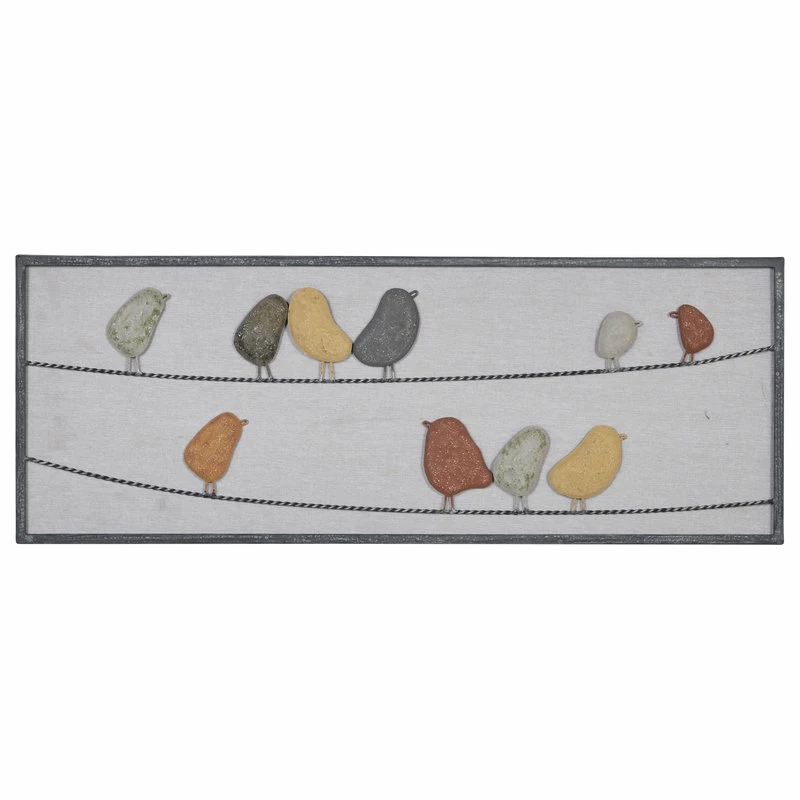 Create a balanced space in the most creative way with this expertly crafted wall decor for captivating focal point. Showcase your personality and turn your walls into an art gallery with this captivating wall decor. Bring a touch of a nature to your walls with this birds on a wire decor displayed in your contemporary-themed living room or hallway. This item ships in 1 carton. Two keyhole hangers on canvas frame; nails and screws are not included. Suitable for indoor use only. This is a single wall decor. Contemporary style.