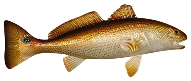 Make a nautical statement with this red drum fish wall decor.. Measures 28 inches long. Made of hand painted polyresin. Hanger attached to back; flat on the back for hanging. Lifelike 3D detail. Made by Charlotte International, imported