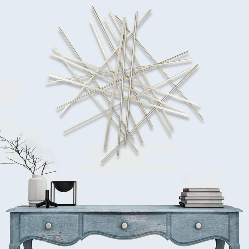Wall decor accent pieces are a tried and true addition for all home decorators looking to enhance the look of any wall area. This piece features a abstract rod design in a silver finish and incorporates a handcrafted, all metal construction. Well suited to a wide variety of spaces, this piece will work wonderfully as an eye catching addition to your home.