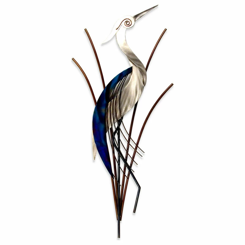 Enjoy the beachy bliss of a seaside paradise with our Abstract Heron Up, a stunningly handcrafted metal wall art piece to add to your coastal home decor. Measuring in at 17 x 38 x 3″ overall, this beach heron art is carefully crafted from formed, ground and painted metal, boasting creative detail, attractive depth and dimension, and artistic embellishments, all designed by the inspired artist Mark Malizia. This stainless steel bird wall decor is unique enough to stand alone, yet versatile enough to complement your existing decorations and home furnishings. If you are looking for coastal decorating ideas, this piece is recommended for indoor and covered outdoor placement, and would make a beautiful display in your kitchen, dining room, living room, nursery or bathroom with nautical, coastal, casual or eclectic themes, with a bit of a contemporary flair.