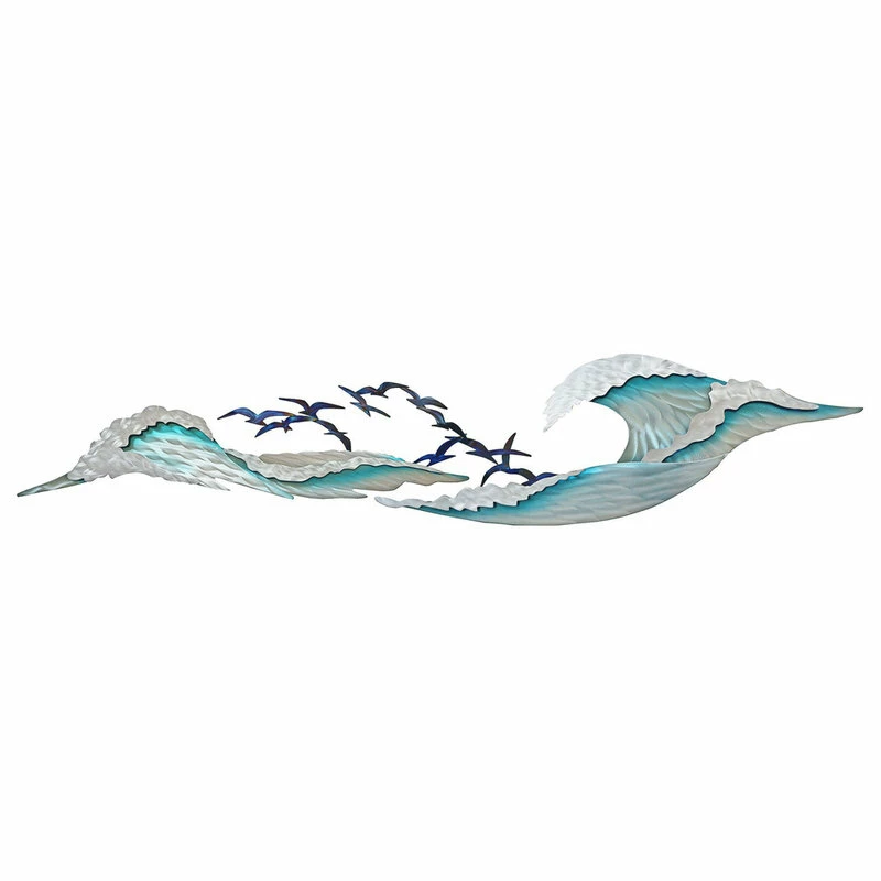 Eye-Catching from Every Angle: Extra Large sized stainless steel wall sculpture. 82W x 14H x 3D (inches) overall. Individually cut, crafted, ground and painted coastal home decor.