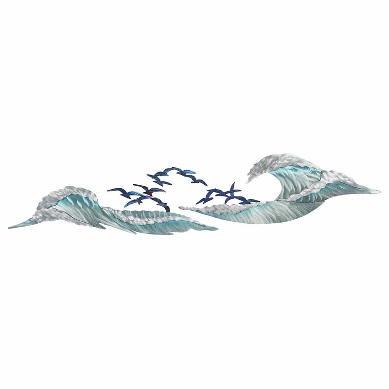 Enjoy the beachy bliss of a seaside paradise with our Ocean Waves I, a stunningly handcrafted ocean metal wall art piece to add to your coastal home decor. Measuring in at 82in x 14in x 3in overall, this nautical waves art is carefully crafted from formed, ground and painted metal, boasting creative detail, attractive depth and dimension, and artistic embellishments, all designed by the inspired artist Joanne Ferrara. This stainless steel seascape wall decor is hand-painted in metallic hues of turquoise, aqua blue, silver, navy blue, and other subtle color variations and textures; unique enough to stand alone, yet versatile enough to complement your existing decorations and home furnishings. If you are looking for coastal decorating ideas, this pleasantly ocean piece is recommended for indoor and covered outdoor placement, and would make a beautiful display in your kitchen, dining room, living room, nursery or bathroom with nautical, coastal, casual or eclectic themes, with a bit of a contemporary flair.