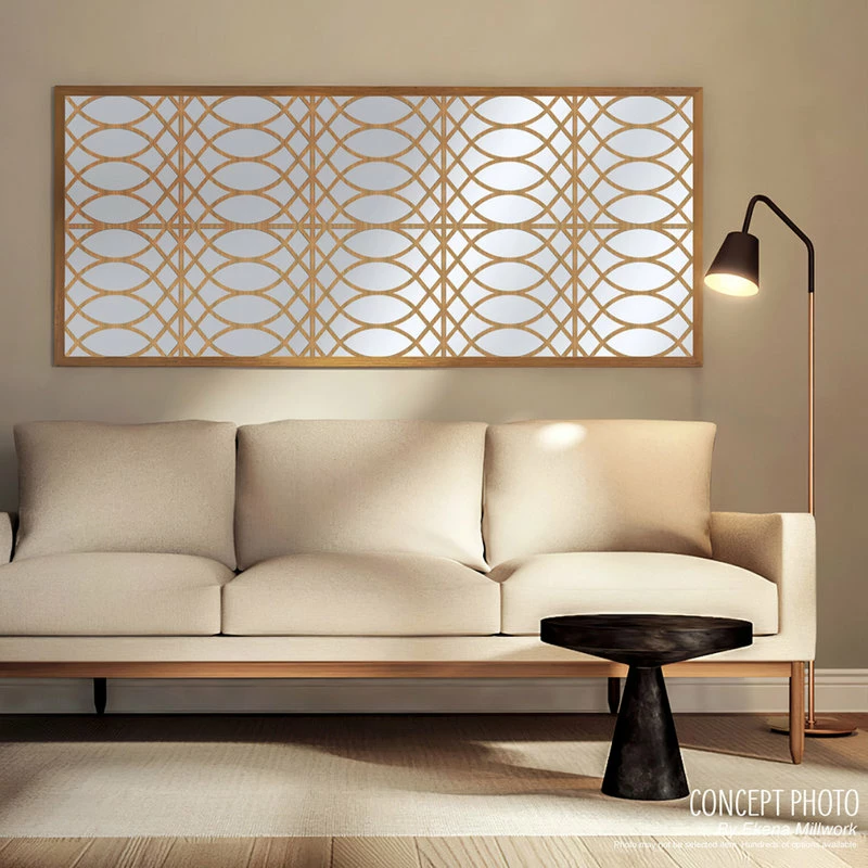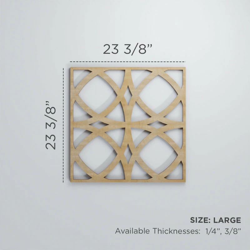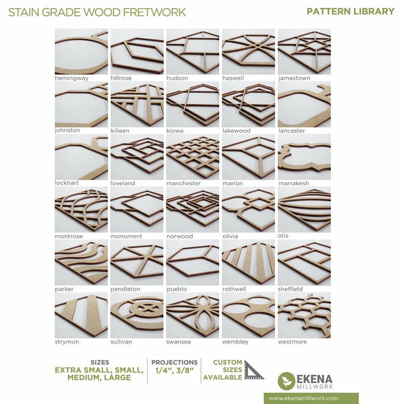 Available in paint-grade, oak, cherry, alder, walnut, hickory, and birch allowing for great strength and durable usage. The natural wood tones evoke luxury and sophistication in any space. You can leave your design mark with unique and inspiring effects on your walls, cabinetry, ceilings and more. Our easy-to-install wood panels can turn a room into a work of art in no time at all. Our distinctive wood fretwork panels add instant value to your home and stand apart from everything else on the market.