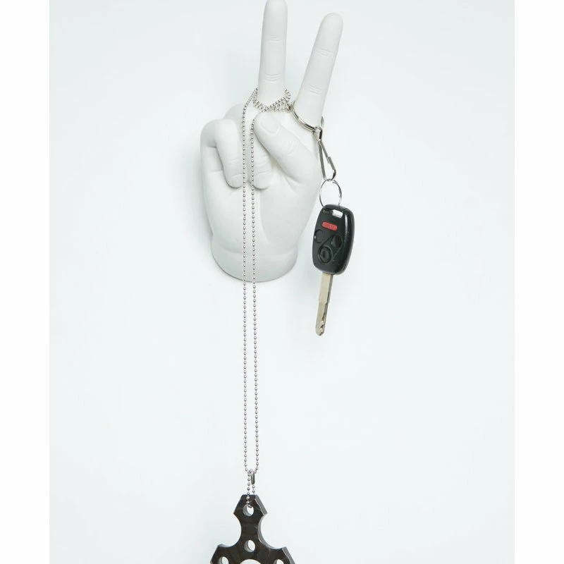 Invite a little life into your office or living space. This hand sculpture is perfect for displaying your favorite jewelry and other hand accessories. Grab one for a simple effect. Grab a couple or a few for an item display that looks alive. Mix and match several styles strategically over a choice wall decal, painting, or backdrop, and watch your efforts burst into life in a dazzling display. A white coat finish invites you to get a little more creative.