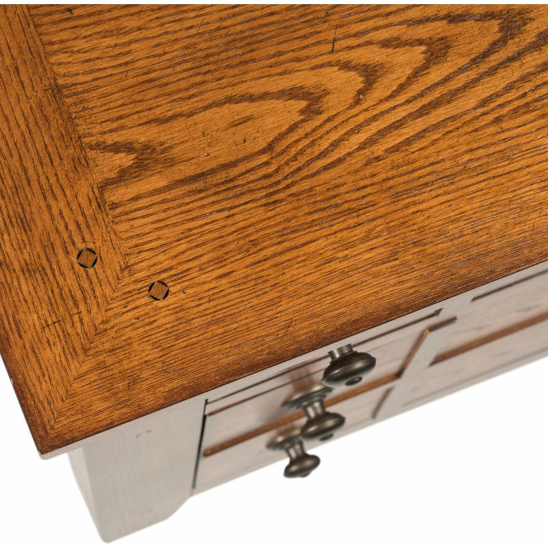 Comfy and casual, the Grandpas Cabin Bedroom Collection from Liberty Furniture offers everything you need to create your own cozy retreat. Each piece is finely crafted from select hardwoods with ash and oak veneers in classic aged oak finish. The fabulous sleigh bed brings serene setting into your bedroom,while the beautiful large picture frame mirror, that also offers hanging system, completes the look. Roomy drawers, which feature Dovetail Construction, Complete Dust Proofing, and Wood-on-Wood Drawer Glides, provide lots of storage space for your bedroom necessities. And for more storage options you might add an optional chest or armoire. Quality construction features and classic sleigh styling make this timeless design an excellent investment!