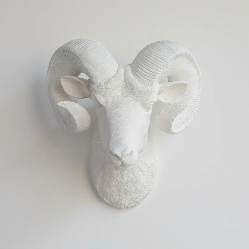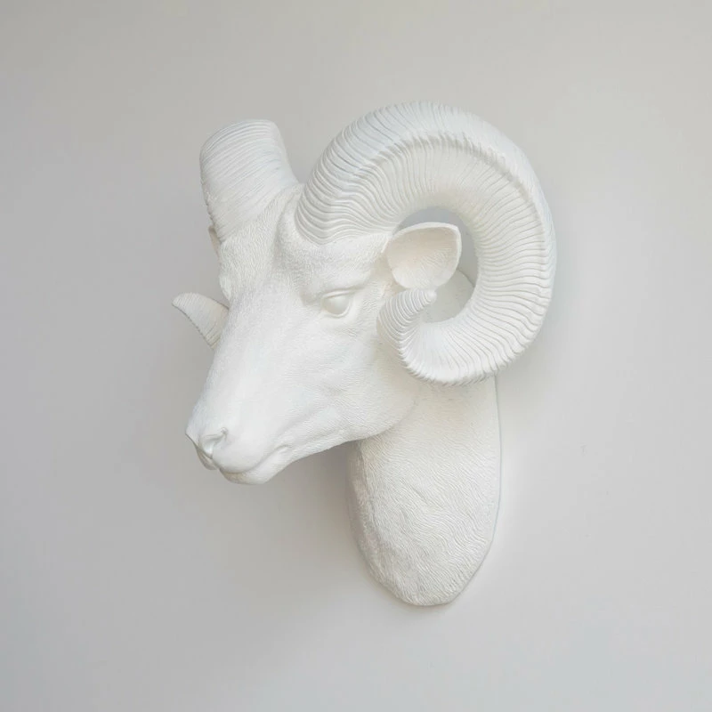 Our fake white resin sheep head has been custom painted white with a matte finish. Have a different color in mind? We can customize any of our faux taxidermy pieces ANY color. Instead of having a color chart that can limit your creativity, we can work with absolutely any color. Just message us with a general color you have in mind or even an exact shade, and we will create your Near and Deer piece with the exact custom color of your choice.