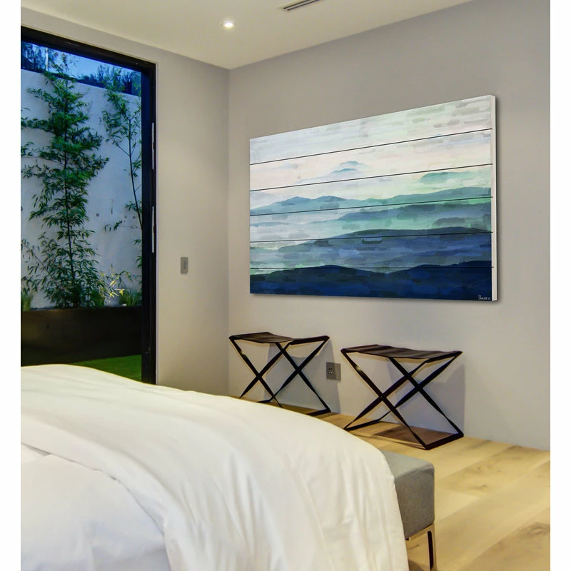 Striking and unique, the “Mountain Tops” UV Ink Print on White Wood by Parvez Taj will bring your walls to life. Printed on white pine wood, this 45 inch wide by 30 inch tall contemporary artwork will make a statement in any living room, dining room, or bedroom.