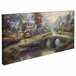 Flash Sale 🛒 Thomas Kinkade Sunset On Lamplight Lane Gallery Wrapped Canvas, 16″x31″ 💯