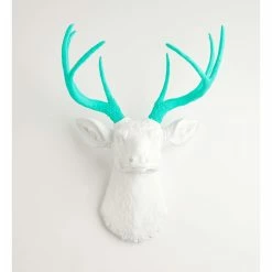 Brand new 😀 White Faux Taxidermy® White Faux Deer Head Wall Mount, Turquoise Antlers ✨