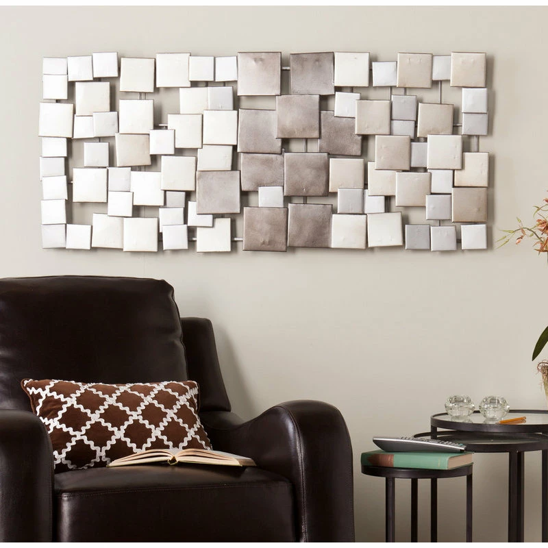 Be a total square. Add a touch of the abstract to your home with the Wavson Wall Sculpture that features squares of varying sizes in a metallic ombre finish. Hang it horizontally or vertically to fit your space and satisfy those creative desires.