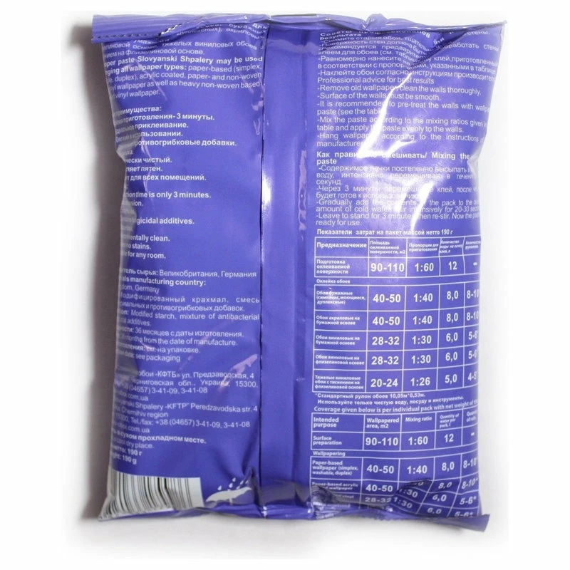 - Instruction: Gradually add the contents of the pack to the desired amount of cold water. Stir intensively for 20- 30 seconds. Leave to stand for 3 minutes then re-stir. Now the paste is ready for use.