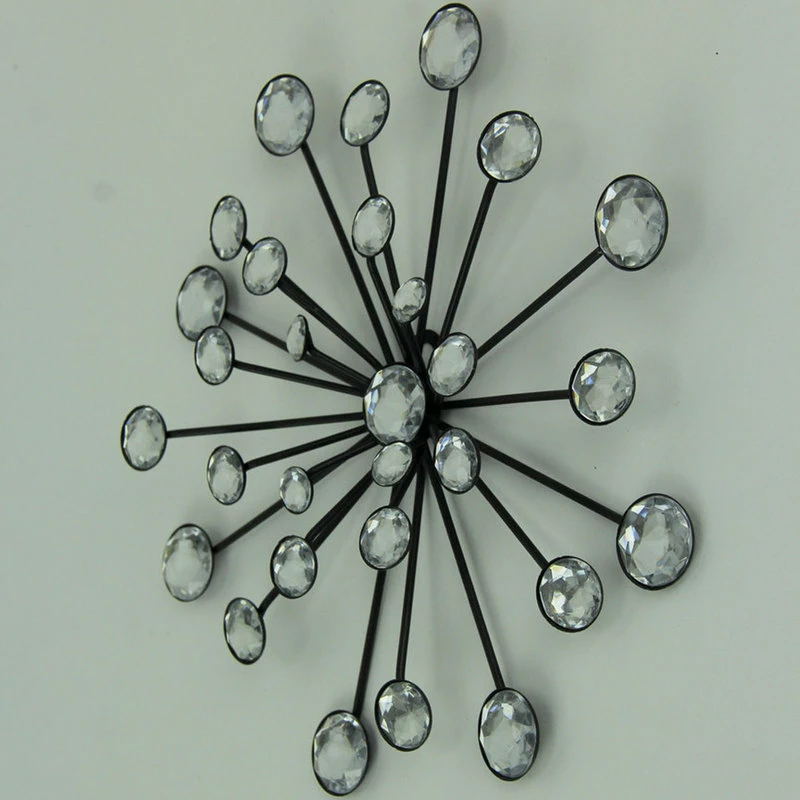 Cheerful rays bursting with sparkling bubbles radiate out from the center creating uniquely beautiful wall accents. They might remind you of floating dandelions or maybe even fireworks. Each piece consists of a sphere of metal rods with jewels on the ends, bursting outward from the center. They bring visual excitement to any room and a simply stylish impact just as they are, and they work well with other wall decorations. Hang each orb separately to tie a larger space together, or arrange them in a series to create a sophisticated and coordinated look. From retro to modern styles, this set of three10-inch in diameter. 1.5-inch wide wall sculptures are perfect for those with an eye for the unusual and a modern sense of style.