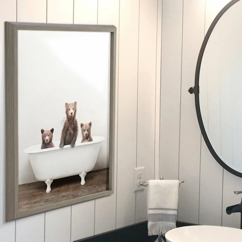 - ARTIST DESIGNED: Print “Three Little Bears in Vintage Bathtub” ยฉ2020 Amy Peterson. Check out other work by this artist to create your very own gallery wall