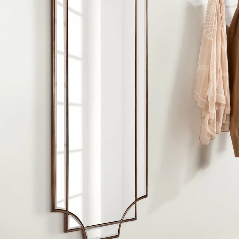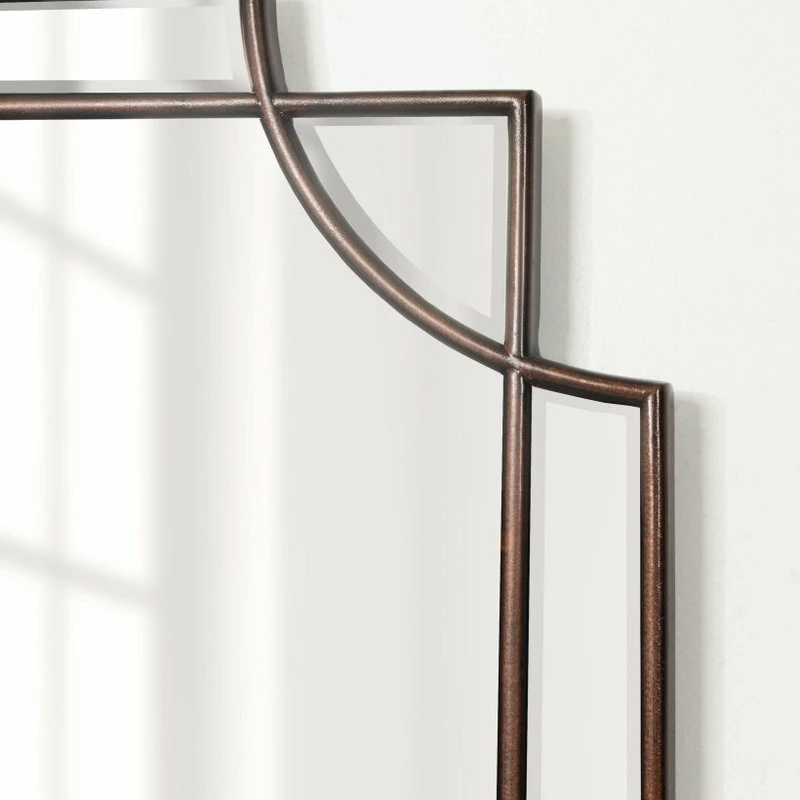 The Minuette panel mirror provides soft elegance and comfort through its traditional design. This timeless piece of home decor features an interlocking geometric frame that draws the eye and enhances the intrigue of the area. With its warm and sophisticated bronze finish, this decorative accent is perfect for any home, offering a cozy look that brings tranquility to any space. The Minuette hangs vertically and horizontally to work within the wall space available. The dimensions of the Minuette are 16 inches wide by 42 inches tall to create a decorative focal point to tie your decor theme around. If you’re working with a closed, windowless space, the panel design of this mirror excels at bringing depth to the area. Adding a mirror to a room elevates the vibrancy of the room, bringing light to even the darkest corners of your home. Hang this cozy, lightweight panel mirror vertically or horizontally with the D-ring hangers attached to the back of the frame.