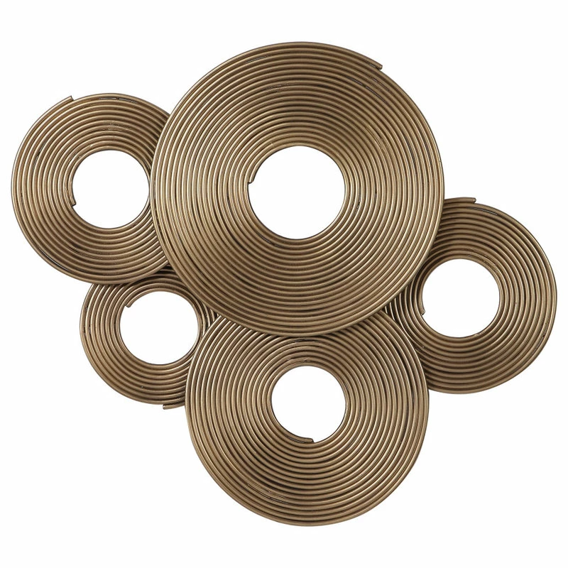 A 3-dimensional Layering Of Spiraled Iron Rings Featuring A Soft Gold Finish. May Be Hung Three Ways.