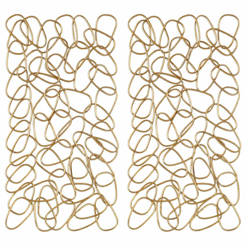 SKU: 04124 Categories: Bedroom Decor, Wall Accents, Wall Decor Tags: Benjamin rugs & furniture, Designer wall d_cor, Metal wall sculpture, Unique wall decor, Unique wall sculpture, Uttermost, Uttermost in the loop gold wall art set of 2, Wall art, Wall Sculpture