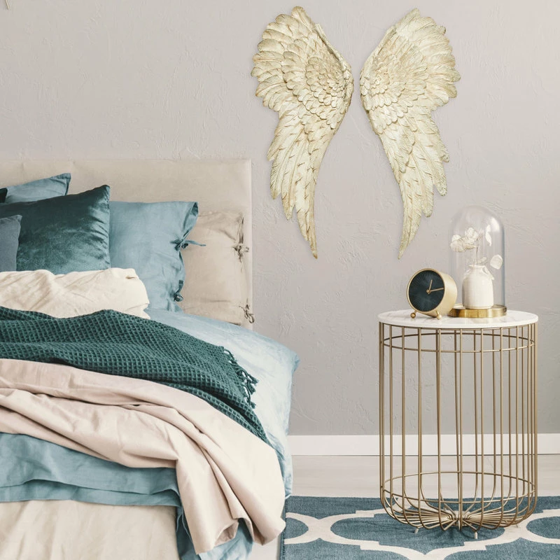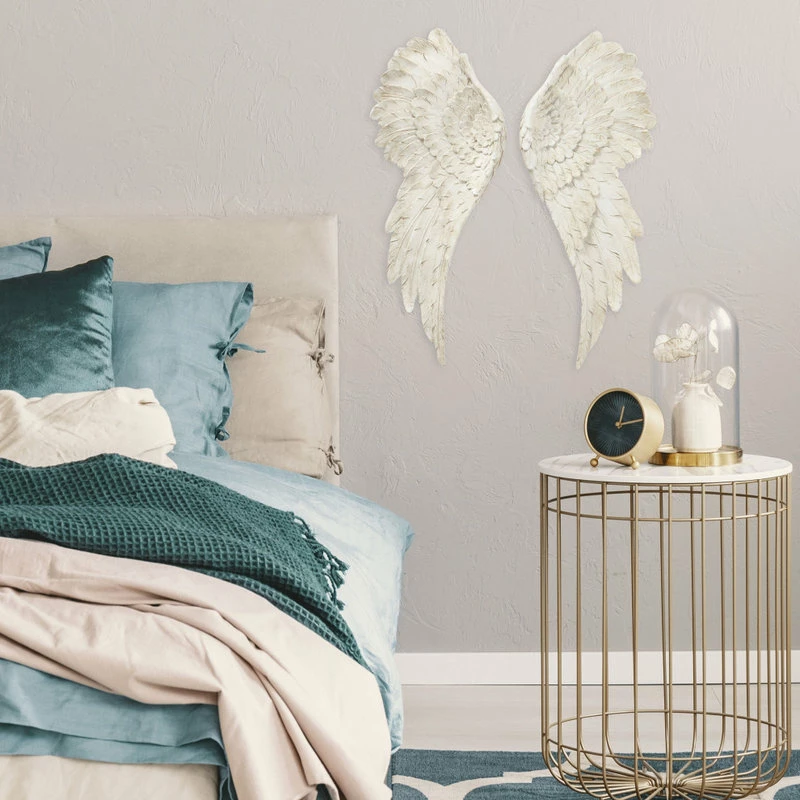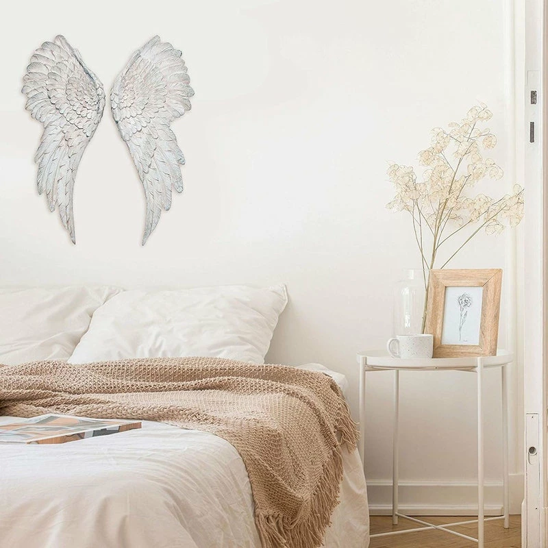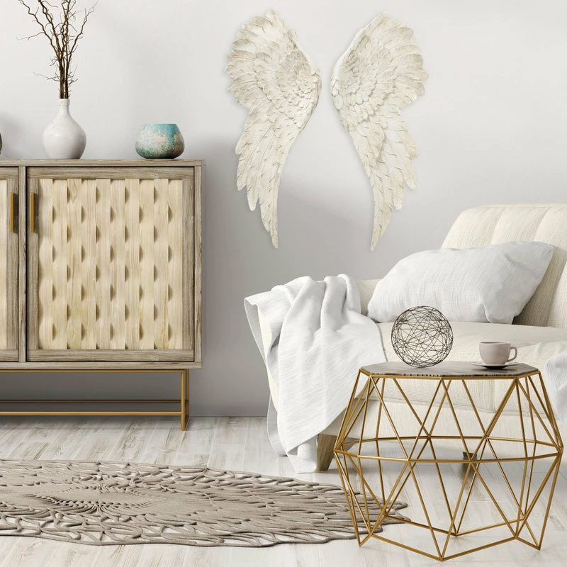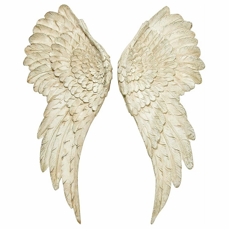 Heave at home. Spread these wings on your walls and create a feathered nest of cozy and welcoming vibes. Wings of freedom. Inspired by masterpieces, iconic wings like these are timeless symbols of cherished ideas. With exquisitely designed feathers that are layered and detailed, these artful pieces are perfect for your spaces. Each antique white wing in the set measures as follows: 2.75 L x 7.75 W x 21.75 H inches. Easy to hang, these feathery wings weigh just under 2 pounds. Crafted by hand. This high-quality sculpture has been created by using a complex multi-step process that starts by pouring liquid poly-resin into a mold. Once set, the mold is broken to reveal the rough piece. When ready, expert artisans meticulously sand, paint and finish each piece individually resulting in fine art for your home. Given the handcrafted nature of these pieces, each piece will be unique and no two will be exactly the same.